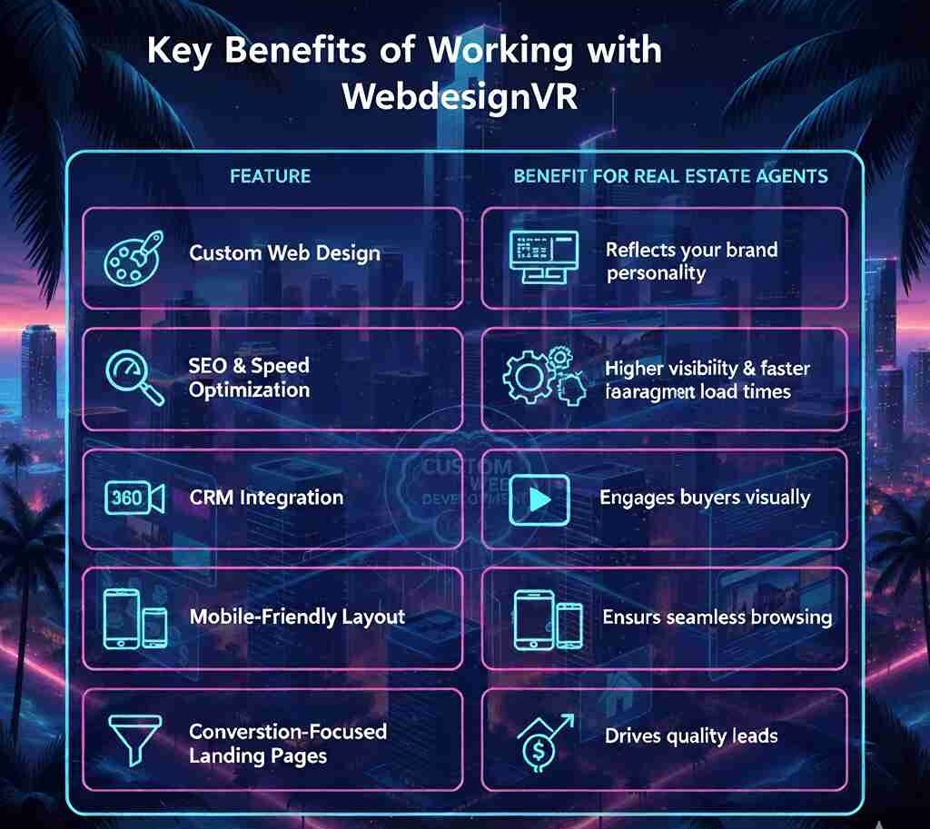 WebdesignVR, the preferred website design company in Miami, builds custom, scalable, and high-performing real estate websites, which combines design, technology, and marketing strategy.