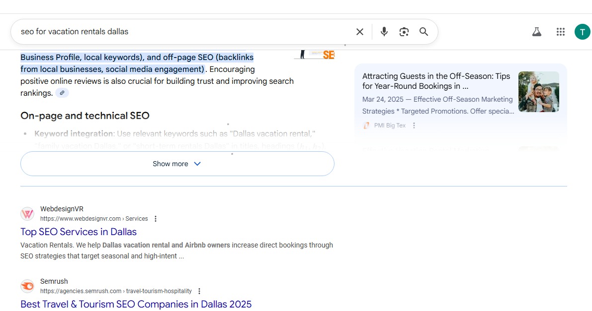 Today, your visibility is everything. Your guests are online - searching, comparing, and booking - faster than ever. To make an impression, your site needs more than a good design; it needs seo for vacation rentals dallas.